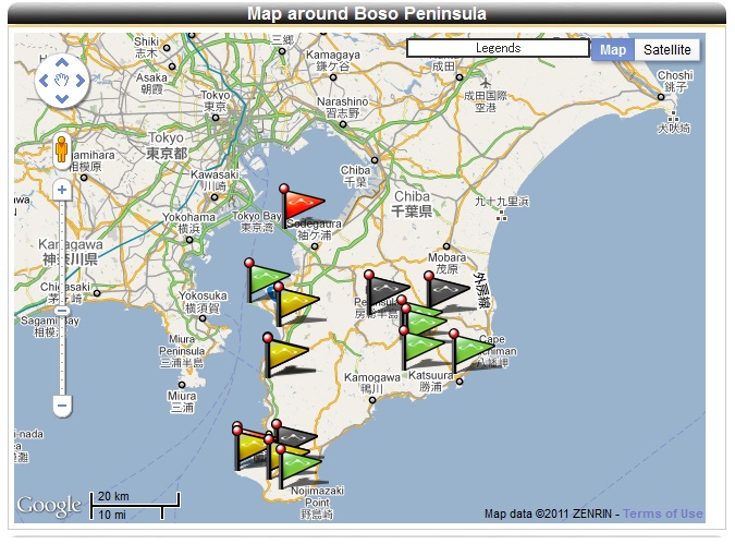 If you are in Tokyo and want to escape the rush for a bit, then get your ass down to the Boso Peninsula. Here’s a map of the area. Click here for the interactive version with info.