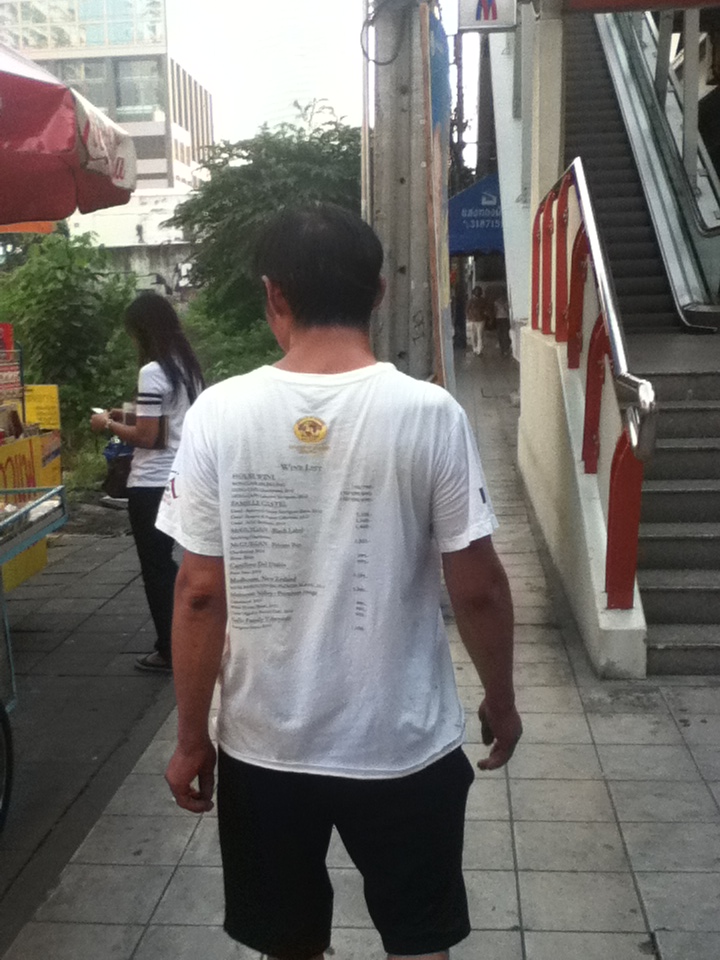 As a break from my usual long-winded travel info posts, this is just a quick blurb to introduce my favorite wino in Bangkok. This guy looks like your average wino…staggering up the street with a half-crumpled cig in his hand. But…